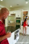 by My Baby Sitters ClubRissa May, busty brunette babysitter with pierced belly button, starts nude on couch legs spread for older man in white shirt, smiling cute …
