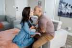 by My Baby Sitters ClubRissa May, busty brunette babysitter with pierced belly button, starts nude on couch legs spread for older man in white shirt, smiling cute …